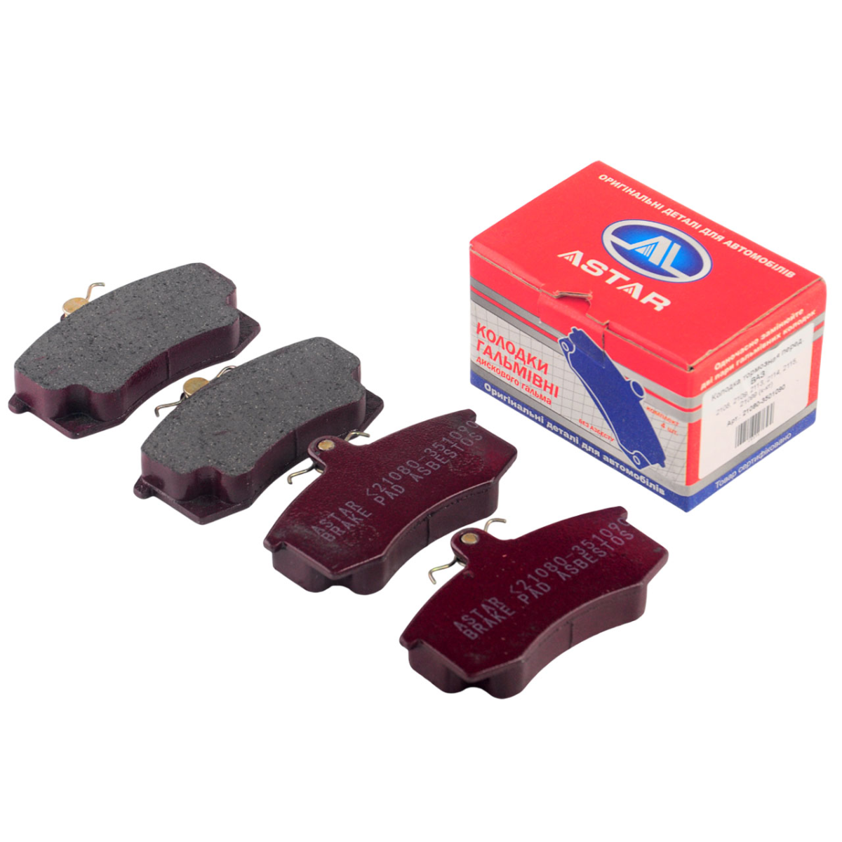 Колодка тормозная передняя ВАЗ 2108-099, 2113-15 (к-т 4 шт.) кор. уп. ASTAR
