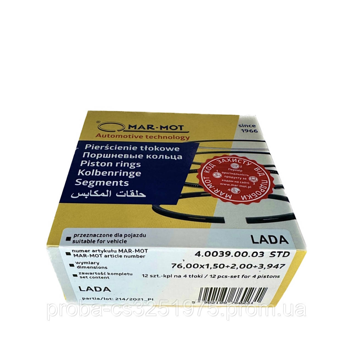 Кольцо поршневое ВАЗ 2101-21099 хром (76,0) (STD), (76,00x1,50+2,00+3,947) к-т, инд.уп.