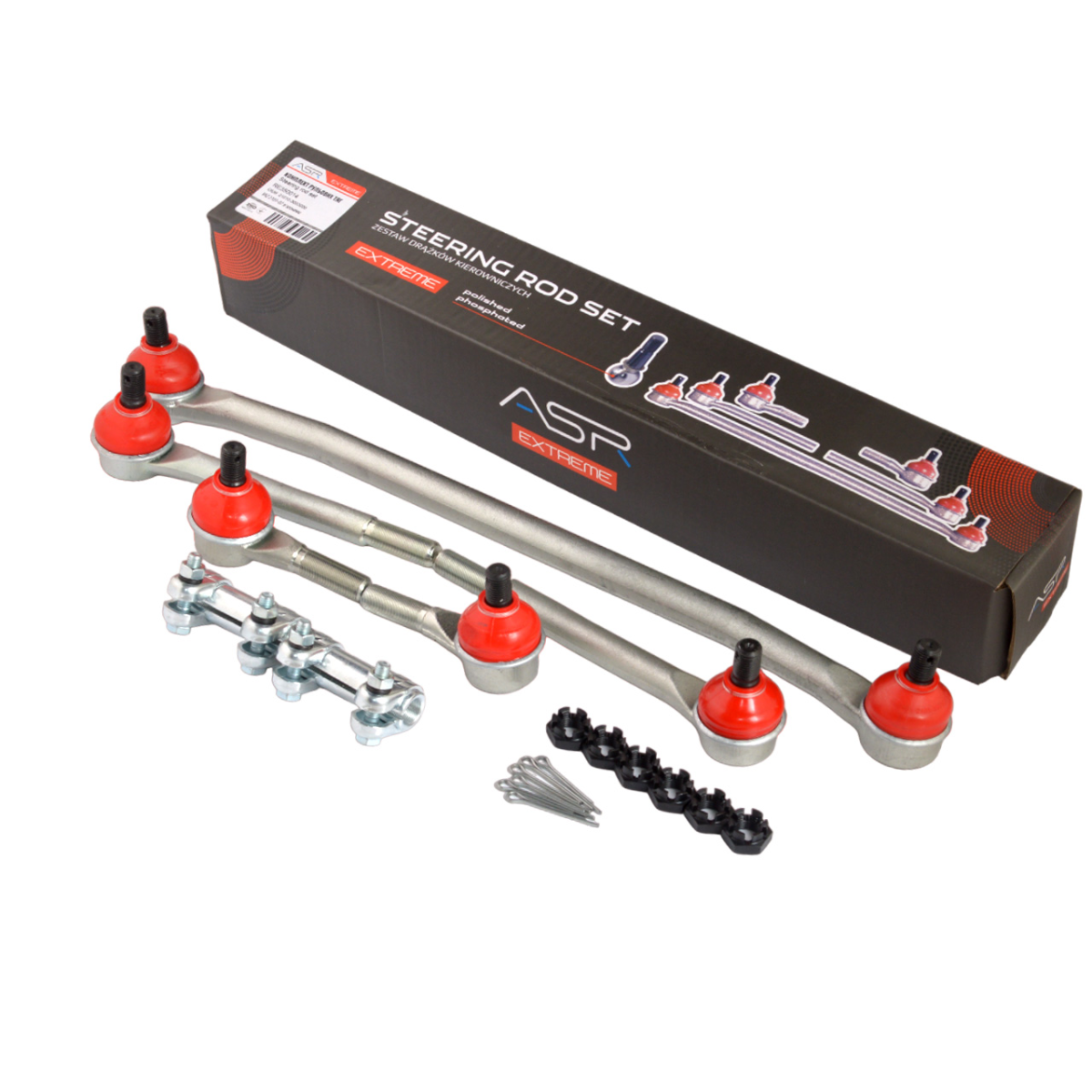 Комплект рулевых тяг ВАЗ 2101-07 со сгонами, кор. уп. «трапеция» с полиуретановыми пыльниками, ASR EXTREME